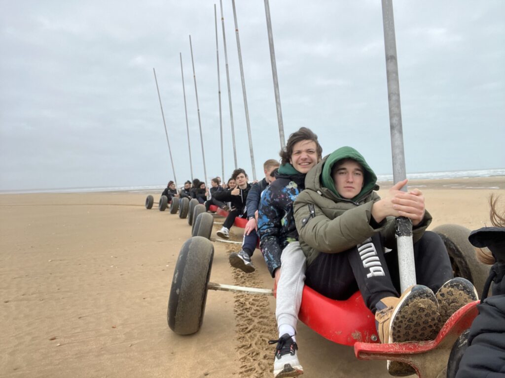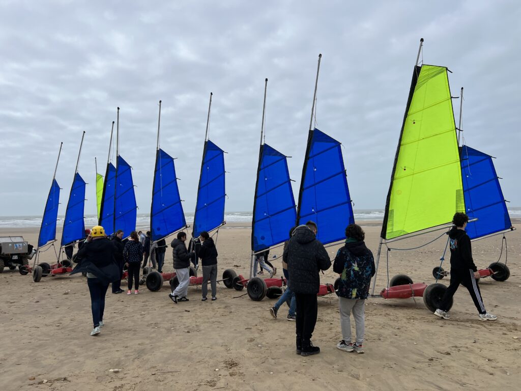 Tag 2: Zuerst haben wir uns bei der Schule getroffen und sind dann alle gemeinsam nach Royan gefahren. Dort haben wir uns in zwei Gruppen aufgeteilt: Die eine Gruppe hat zuerst einen Bonbon-Workshop gemacht, während die andere Gruppe eine Stunde Freizeit hatte. Anschließend sind wir alle zusammen Char à voile (Strandsegeln) gefahren.