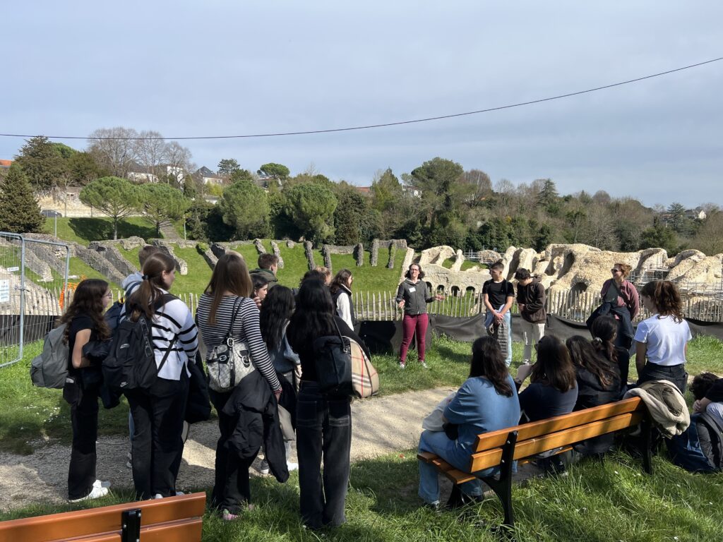 Nach ungefähr 12 Stunden Zugfahrt kamen wir endlich in Saintes an und wurden von unseren Gastfamilien herzlich empfangen. Am ersten Tag lernten wir uns erstmal alle mit einem Bingo kennen. Für die Franzosen natürlich auf Deutsch und für die Deutschen auf Französisch. Dann durften wir zwei Stunden am Unterricht teilnehmen. Als Nächstes starteten wir am Amphitheater mit der Stadtrallye, bei der wir den Raub an dem Architekten des Amphitheater auflösen mussten. Dabei durften manche sich auch anhand von Kostümen in die Rollen der Verdächtigen hineinversetzen. Die Anderen suchten an verschiedenen Orten Indizien, um die Täterin oder den Täter zu entlarven. So hatten wir sehr lustige Momente und haben die sehr schöne Stadt kennengelernt. Am zweiten Tag starteten wir mit einer Art Schnitzeljagd auf der l’île d‘Oléron, bei der wir an verschiedenen Orten auf der ganzen Insel Stempel suchen mussten und unsere Karten als Beweis abgestempelt haben. Nachdem wir alle gegessen hatten, haben wir Char à voile gemacht. Dabei segelt man mit einem kleinen Sitz mit drei Rädern und einem Segel bei Ebbe am Strand. Am Wochenende hatten wir alle Zeit, mit unseren Gastfamilien viel zu erleben und viele Erfahrungen zu sammeln.