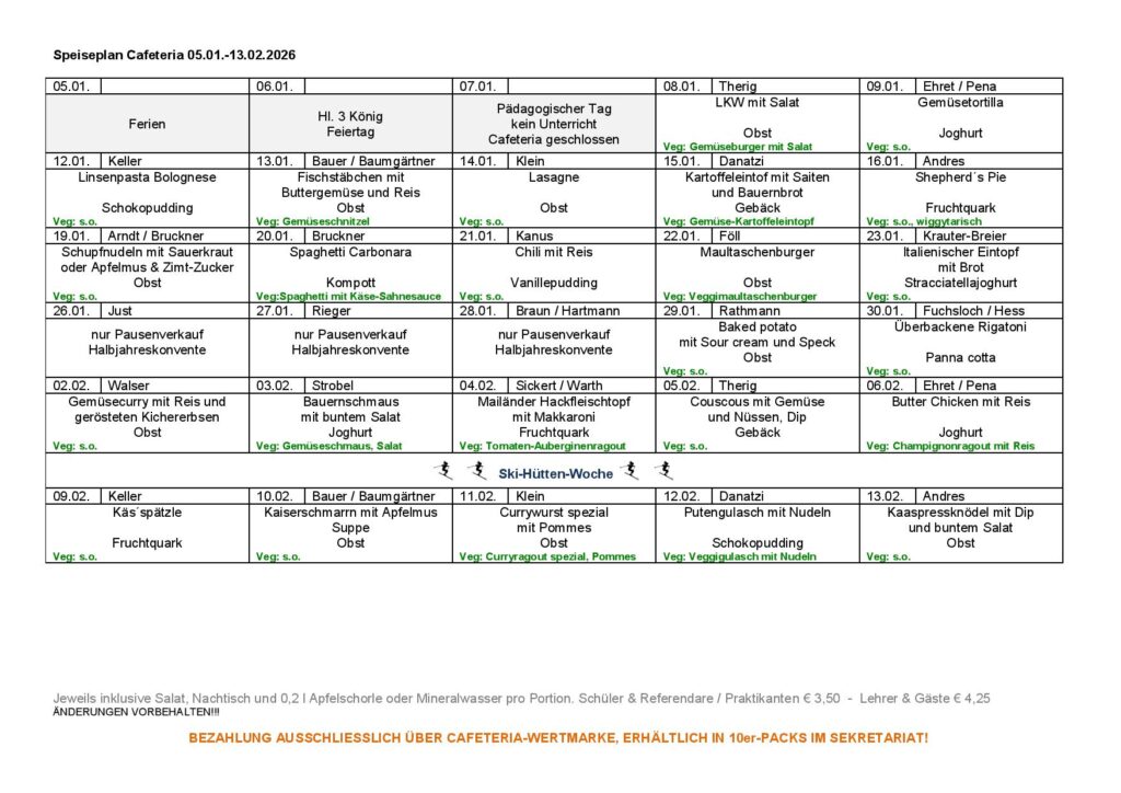 Kennzeichnungspflichtige Zusatzstoffe sowie enthaltene allergene Zutaten sind auf den aushängenden Speiseplänen sowie tagesaktuell auf dem Thekenaufsteller aufgelistet.