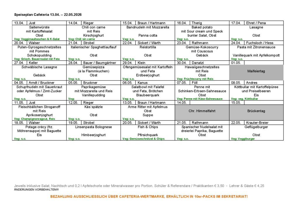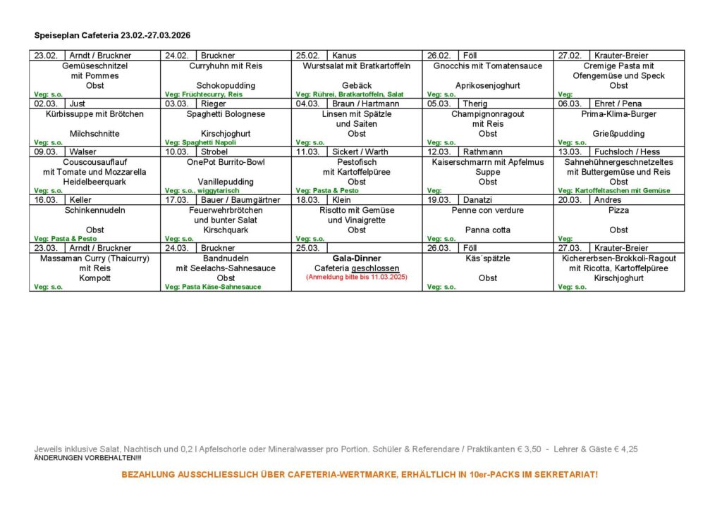 Kennzeichnungspflichtige Zusatzstoffe sowie enthaltene allergene Zutaten sind auf den aushängenden Speiseplänen sowie tagesaktuell auf dem Thekenaufsteller aufgelistet.