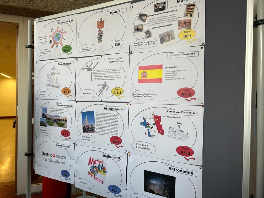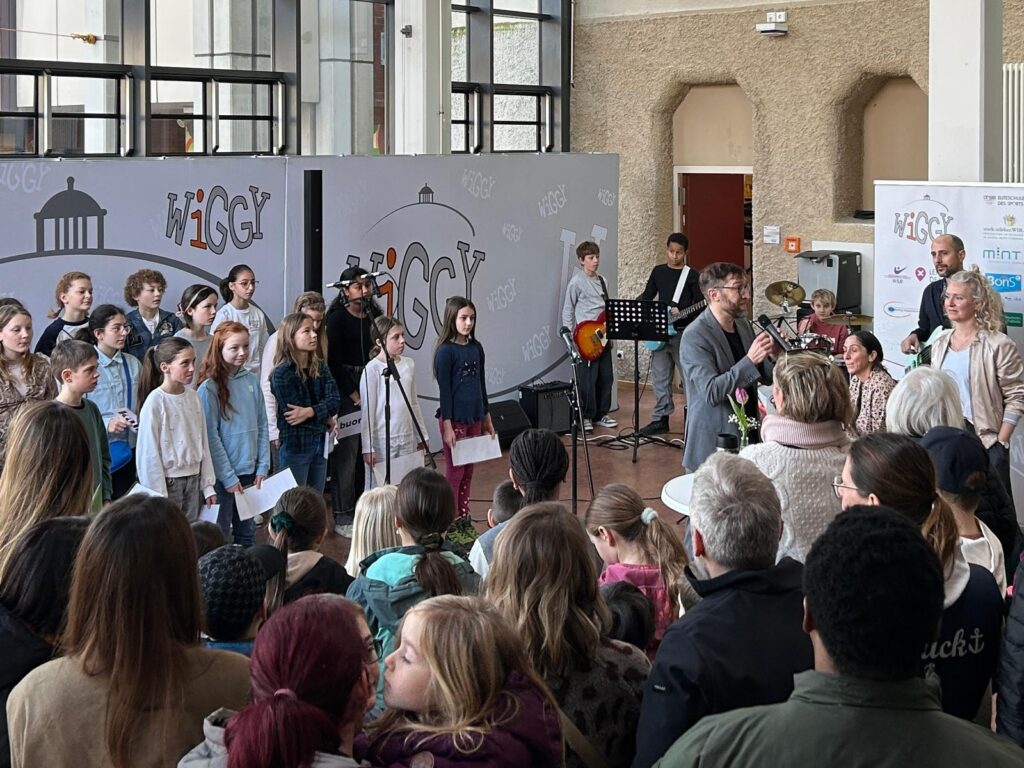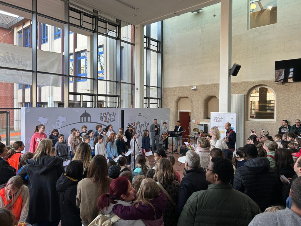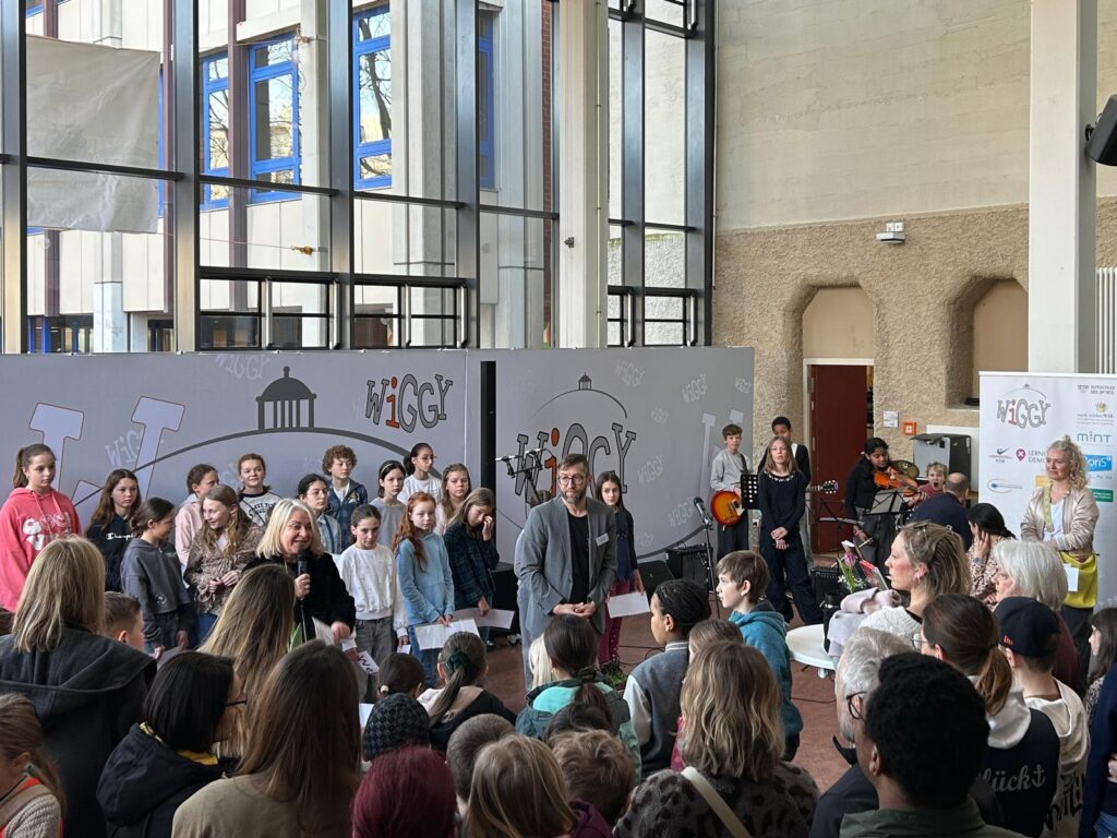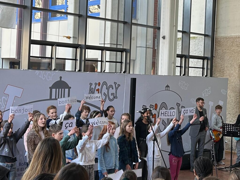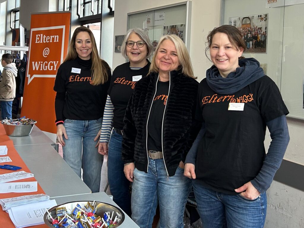 Und damit den jungen Gästen auch keine Attraktion entging, wurden sie von den jetzigen Fünftklässlern durchs Haus gelotst, die erst ein halbes Jahr zuvor selbst zum ersten Mal Räume und Flure ausgekundschaftet hatten. Alle Fachschaften luden zum Mitmachen ein, ob beim Experimentieren in Chemie oder Physik, beim Ausflug in die römische Antike, nach England oder Frankreich. Schulleitung und Lehrkräfte standen Rede und Antwort – von Ganztagesbetreuung über AGs bis hin zur Eliteschule des Sports. Ebenso gaben Eltern Auskunft über den Schulalltag und die lebendige Schulgemeinschaft am Wiggy. Und wer nach all den Eindrücken eine Pause brauchte, wurde im Atrium fündig: Die Sechstklässler versorgten alle Gäste mit Kaffee und Kuchen.