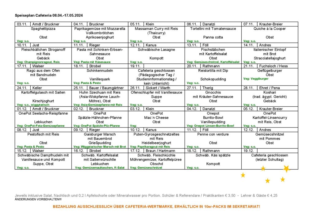 Kennzeichnungspflichtige Zusatzstoffe sowie enthaltene allergene Zutaten sind auf den aushängenden Speiseplänen sowie tagesaktuell auf dem Thekenaufsteller aufgelistet.